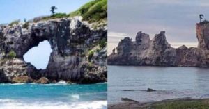 La formación rocosa de Playa Ventana fue devastada luego del sismo de 5.8 de magnitud a las 6:32 horas con profundidad de seis kilómetros y epicentro al sur de la isla