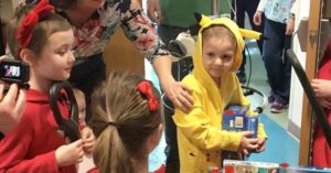 Poppy llevó 300 juguetes a los niños, muchos de ellos, amigos suyos
