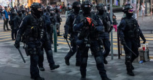 Los manifestantes buscaron resistir los ataques al abrir sus paraguas y cubriéndose entre sí aunque previamente en un centro comercial aledaño, atacaron a personas ante rumores de ser agentes encubiertos.