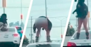 La joven estaba encima del vehículo en movimiento armando tremenda escena de celos, reclamaba una supuesta infidelidad