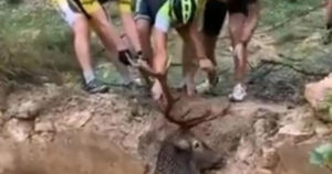 Un ciervo que estaba a punto de morir atrapado en una zona que terminó inundada en la localidad de Huéscar, en Granada, España, logró sobrevivir gracias a la ayuda de un grupo de ciclistas que unieron sus esfuerzos para rescatarlo.