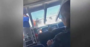 Un barco lleno de observadores de ballenas fue golpeado por una ola gigante en Australia.