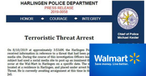 La Policía de Harlingen, Texas, detuvo a un sujeto que amenazó en redes sociales con ataque en una tienda Walmart local.