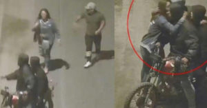 Los sujetos que van en la moto reconocen a la señora y la saludan.