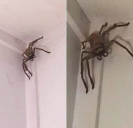 Una mujer australiana ha contado su terror cuando regresó a casa para encontrar una araña cazadora gigante que acechaba en el techo de su sala de estar.
