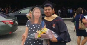 Un joven recién graduado recordó a su madre recién fallecida con una foto de tamaño real.
