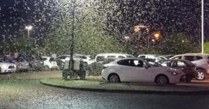 La invasión masiva de los insectos se atribuye a la inusual humedad que se instaló en la ciudad en primavera y en invierno.