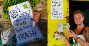 Un joven harto de vivir en suciedad, preparó cigarros de marihuana para regalar a turistas que recojan basura.