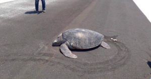 Tortuga en peligro de extinción puso sus huevos en la carretera que destruyó la playa donde anidaba