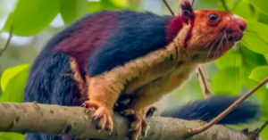 Captan en video a una ardilla con pelaje multicolor y mucho más grande que una normal.