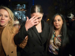En la grabación que fue difundida en redes sociales, se ve a la esposa del capo intentando esquivar a los medios de comunicación