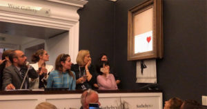 Tras cerrarse la venta sonó una alarma y la obra empezó a bajar por una máquina que la dejó a tiras