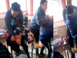 En la grabación realizada por una de las alumnas se observa cómo un pequeño es violentado físicamente en su pupitre