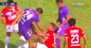 Un jugador se desesperó por no quedarse con el esférico y dio un tremendo izquierdazo a su rival