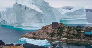 El iceberg, que es del tamaño de una colina, avanza cerca de una localidad en la costa occidental de Groenlandia
