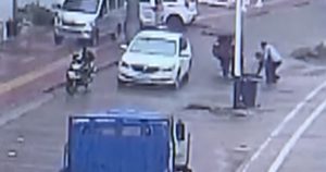En las imágenes se aprecia el dramático momento en que el menor de edad se resbala y cae en la parte abierta de la red de drenaje pluvial