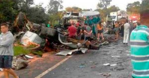 El accidente fue provocado por el conductor de una camioneta que, al parecer en estado de embriaguez, invadió la vía contraria y chocó con el camión
