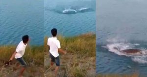 El hombres tomó al pequeño perro del cuello para posteriormente arrojarlo al agua, al parecer intentó lanzarlo lo más lejos posible con la intención de que se le dificultara aún más el volver a la orilla