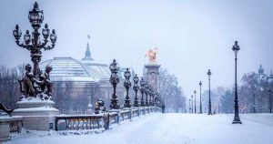 Esta mañana la nieve cayó copiosamente en la capital francesa