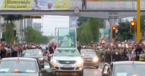 La mujer se acercó rápidamente al vehículo en el que el Francisco viajaba