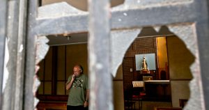 A solo tres días de su visita al país, desconocidos atacaron los templos y en uno le dejaron un macabro mensaje, así como un bidón lleno de combustible