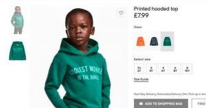 La compañía hizo que un niño de color modele una sudadera para una publicidad en su página web