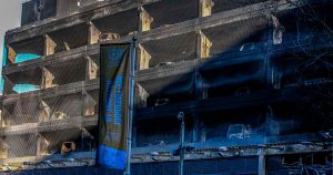 El fuego se propaga por un estacionamiento de siete pisos cercano a un complejo de eventos que acogía un popular espectáculo de caballos en la ciudad de Liverpool