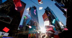 Turistas y neoyorquinos anotaron sus deseos para el año entrante en tiras de confeti que se lanzarán