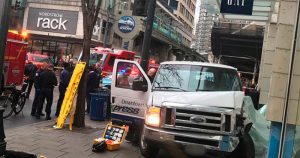 El vehículo tipo van que traslada pasajeros por la ciudad subió a la acera y embistió una tienda Gap poco antes del mediodía