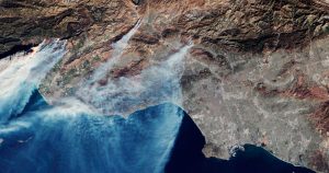 Satélites de la Agencia Europea del Espacio mostraron la imagen que evidencian «las llamas y el humo» que devastan el noroeste de Los Ángeles.