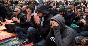 Los asistentes se arrodillaron frente a la residencia presidencial para clamar contra Trump