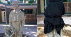 Una escultura en la que un santo está ofreciendo un tipo de pan a un menor se viralizó en las redes.