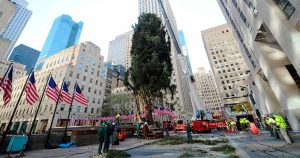 Traído desde Pensilvania, el árbol de 23 metros de altura es instalado en la emblemática plaza; será iluminado el 29 de noviembre