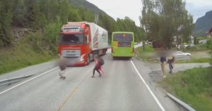 VIDEO: Un tráiler estuvo a punto de atropellar a un niño que bajó del autobús escolar y cruzó sin mirar la carretera
