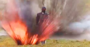 VIDEO: El material muestra a una joven que resulta ilesa luego de caminar entre fuego y explosiones, gracias a que porta un revolucionario traje blindado