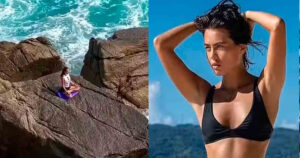 Kamilla Belyatskaya se encontraba de vacaciones en Tailandia y tuvo la idea de subir a un acantilado con su tapete y comenzar a practicar yoga, sin embargo, el temporal era muy malo.