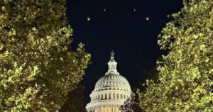 Las misteriosas imágenes muestran cuatros brillantes luces haciendo una formación triangular, mientras parecen flotar a pocos metros de la parte superior de la cúpula