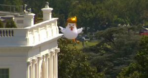El muñeco inflable fue desplegado en La Elipse, frente a la residencial oficial del presidente de EEUU