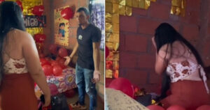 Tatiana no pudo contener el llanto y sorprendida comenzó a llorar ante la respuesta de su pareja, por lo que arrancó toda la decoración que había hecho para él