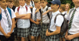 Unos 30 niños escolares decidieron asistir a clases en falda en protesta por el reglamento de la institución que no les permitía ir en pantalón corto