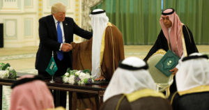 El presidente estadunidense y el rey Salman se reunieron en el Palacio Al-Yamamah, donde conversaron de las históricas relaciones que han unido a los dos países