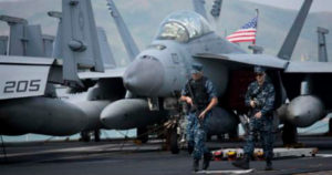 Se estrella Caza al aterrizar en portaaviones que EU envió a Corea