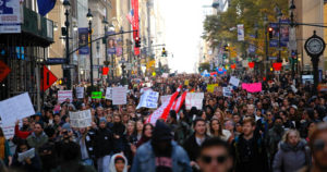 Alrededor de 2 mil personas se manifiestan en la capital estadounidense en contra de la retórica xenófoba y las políticas migratorias del presidente electo