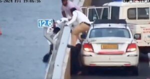 Entre tres policías y el automovilista lograron salvar a la víctima