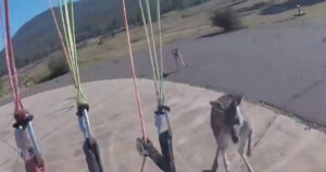 VIDEO: Canguro golpea a paracaidista al aterrizar