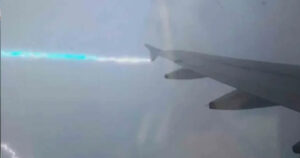El pasajero a bordo del vuelo BA919 captó el momento en el que un rayo impactó el ala del avión mientras volaba por un cielo sumamente oscuro a causa de una tormenta.