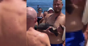 Tiburón bebé muerde a bañista y se queda aferrado al brazo