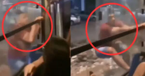 En redes sociales se viralizó un sujeto que no le importó que el vehículo estuviera avanzando.