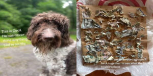 El incidente ocurrió cuando, aprovechando un descuido, el astuto perrito masticó los billetes que Clayton había dejado sobre la cocina apenas 30 minutos después de retirar la considerable suma del banco