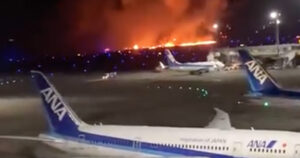 Aviones chocan en aeropuerto de Japón; hay 5 muertos